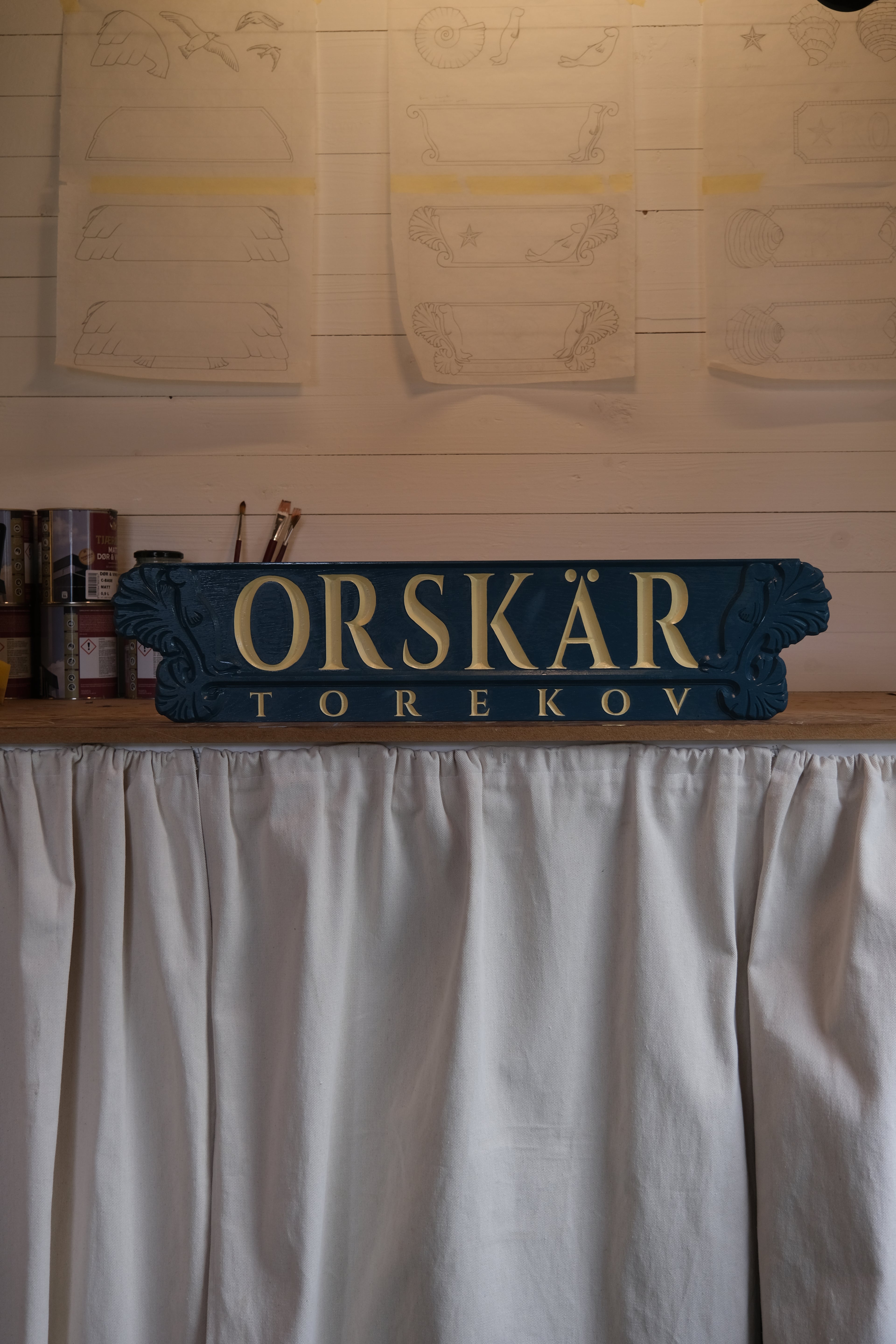 Vi är baserade på Bjärehalvöns spets. I en sjöbod i Torekovs hamn jobbar vi med att åter ge dessa skyltar liv och mening. Vi använder oss av historiska berättelser och lärdomar men tar också hantverket in i nutiden med hjälp av moderna tillverkningstekninker och samtida motiv.